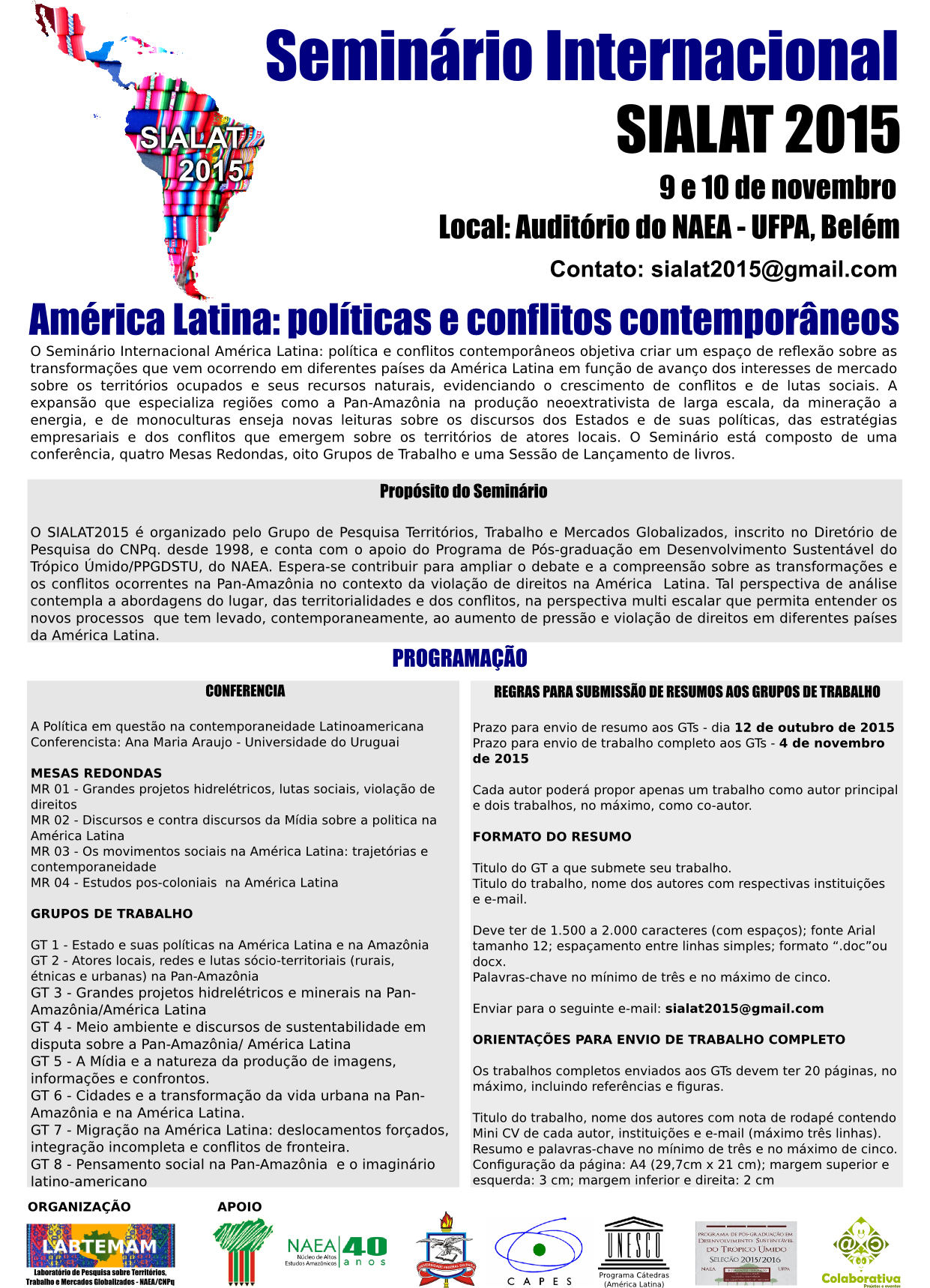 Seminário Internacional América Latina: políticas e conflitos contemporâneos - SIALAT 2015?