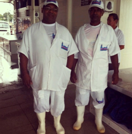 Prof. Antônio Rodrigues entre manipuladores                                  Manipuladores uniformizados conforme os padrões