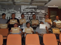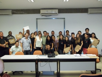 Alunos do curso de Manipulação com seus certificados de conclusão de curso.